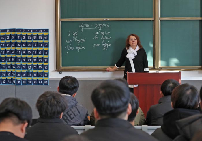 12月6日,沈工-华中数控“一带一路”订单班同学在上俄语课。 新华社记者杨青 摄