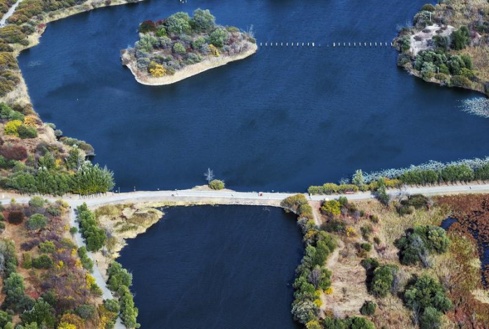 这是10月7日拍摄的哈尔滨金河湾湿地公园景色(无人机照片)。新华社记者王松 摄