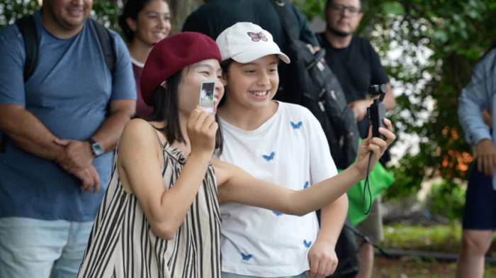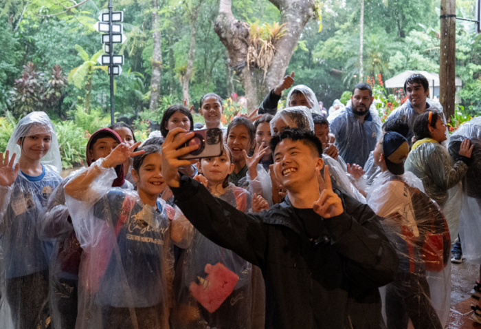 视频博主徐楚涛和偶遇的伊瓜苏小学生们合影。