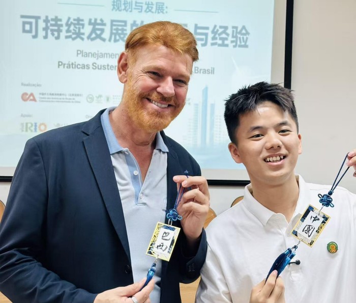 这样的瞬间,在参访途中不断上演。来自广东的徐楚涛曾担心语言障碍会让旅程显得枯燥,可现实却给了他“巨大的惊喜”。走在圣保罗街头,常有年轻人主动过来合影、互关社交账号。一个笑容、一个握手,就是最好的沟通方式。在他看来,巴西“是一个能容纳全世界文化的、充满人情味的包容之地。”身为青年书法博主的徐楚涛,特意带来了中国宣纸。在11月18日弗鲁米嫩塞联邦大学孔子学院的交流活动中,他教巴西友人书写“福”字。“这张薄薄的纸,成为我们相遇的‘实体记忆’。”