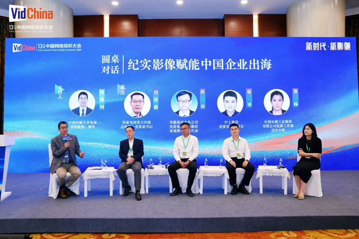 在“纪实影像赋能中国企业出海”主题圆桌交流环节,四位中央企业代表结合实践经验分享交流,活动由中国传媒大学电视学院教授田维钢主持。国家电网英大传媒总编辑、党委副书记刘清鑫表示,真实、创新、价值和共情,是纪实影像国际传播的核心要素,也是企业出海要遵循的原则。中国华能桑河水电公司党委委员、华能驻柬埔寨代表处郭俊分享三部中柬合作完成的纪实作品案例。