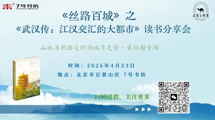 春风拂书香,文脉润人心。恰逢4·23世界读书日这一充满仪式感的日子,《丝路百城传》系列读书分享会第四期——《武汉传:江汉交汇的大都市》在7号书坊温情启幕。