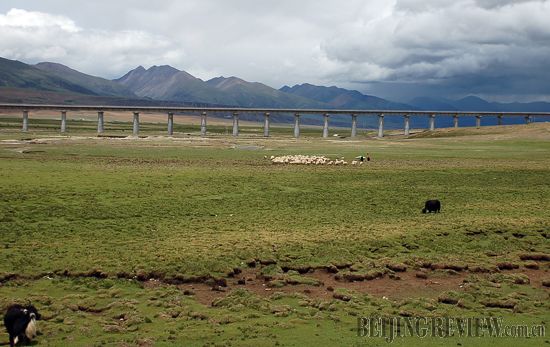 青藏铁路附近平静的游牧生活(景小磊摄)